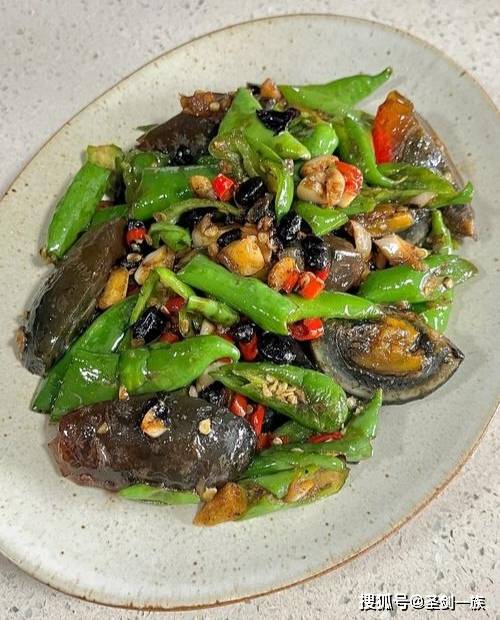 2. 炒香调味:热锅冷油倒入皮蛋翻炒片刻,加入青红辣椒、蒜蓉炒出香味。