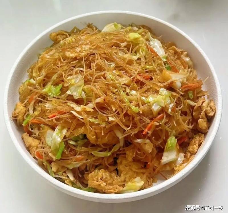 3. 翻炒出锅:倒入由2匙生抽、半匙老抽、1匙蚝油、少许砂糖和胡椒粉搅拌成的酱汁,翻炒均匀即可。包菜粉丝炒鸡蛋