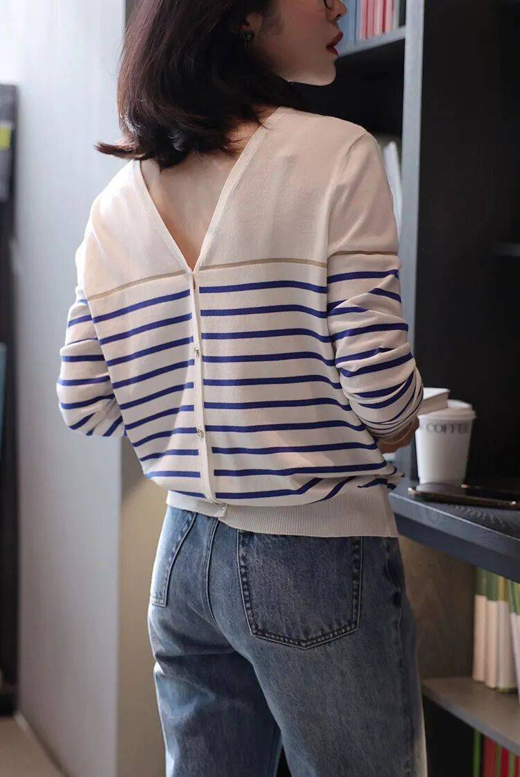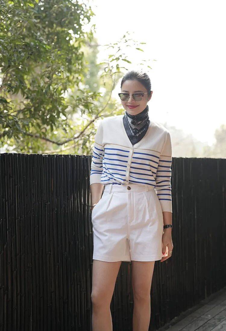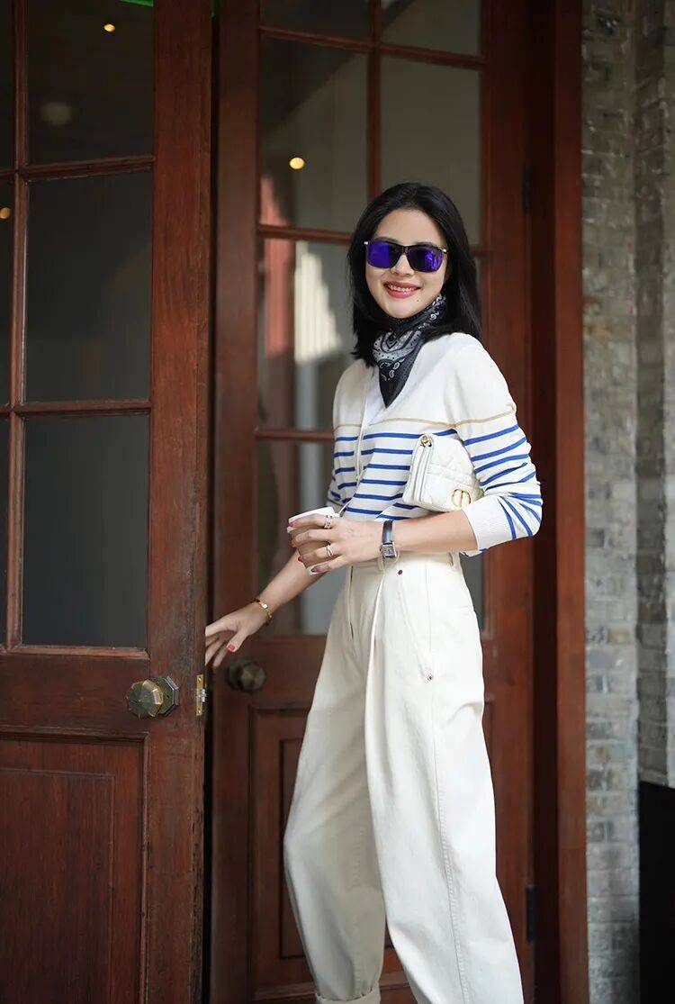 颜色用米白+浅蓝,柔和显气质,适合早秋约会或下午茶。