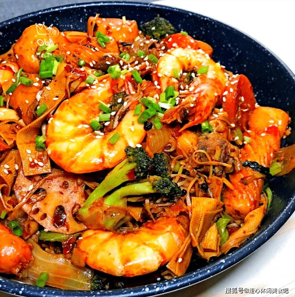 5. 麻辣香锅:这道菜可以根据个人口味选择不同的食材,麻辣香锅底料是其灵魂所在。先放入肉类食材翻炒,再放入蔬菜快速翻炒均匀。