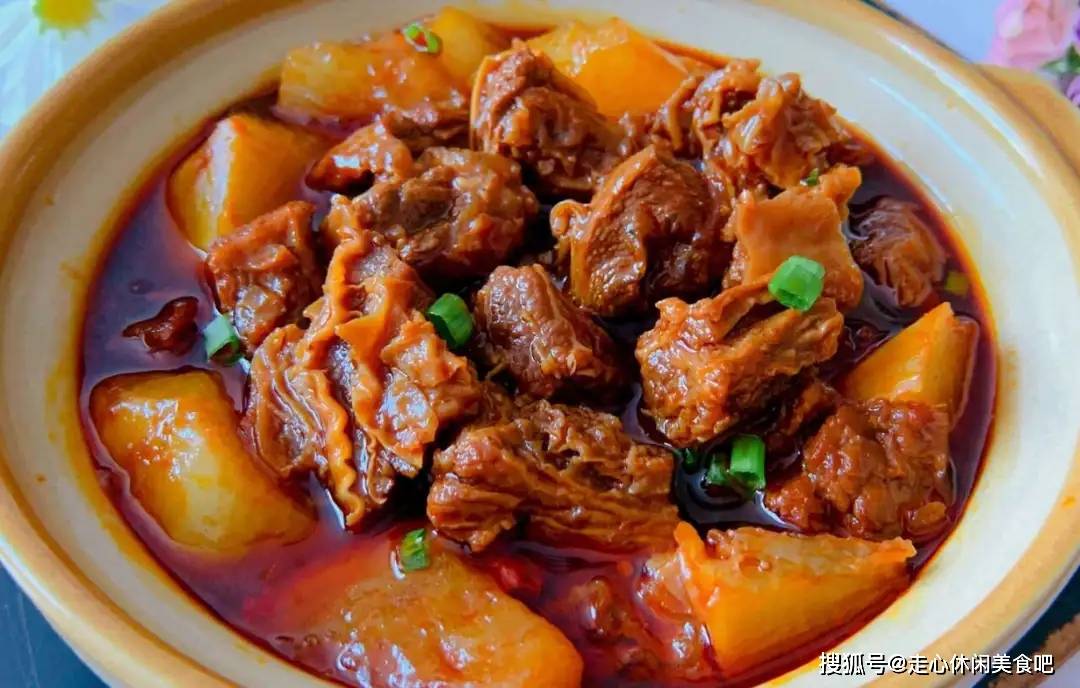 3. 萝卜牛腩煲:牛腩和萝卜的搭配滋补又美味,秋冬季节食用再合适不过。牛腩需要慢炖较长时间,使其更加酥烂入味。