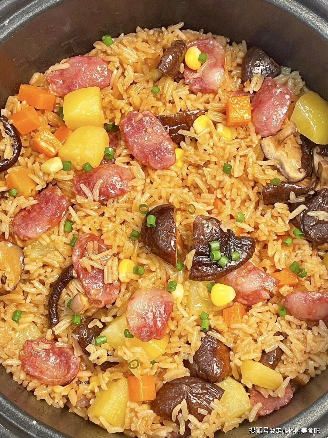 7. 香菇焖饭:这道菜简单易做,一锅出,适合懒人。干香菇泡发后切片,泡香菇的水留着备用。