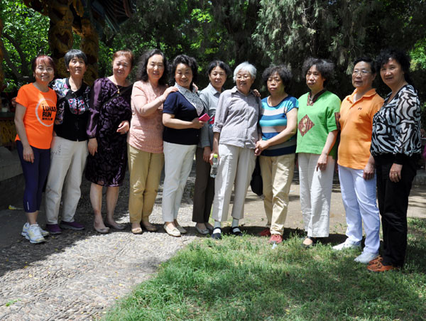 五十多年过去了,同学们纷纷带着自己心底中的那些感慨和回味,来到这里与当年的陆玲玲、周万瑜两位陪伴大家六年学业的师长重逢相聚,那种激动、兴奋和奇怪的说不出来的感觉,令每位同学都怦怦心动。在龙潭公园的西北大门前,大家留下了一张大合影后步入园中。