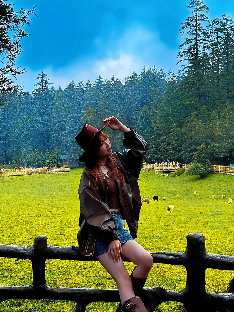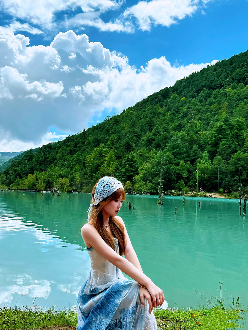 - 景观:玉龙雪山为背景,云杉林环绕,草甸如绿毯铺展。晴天时,阳光透过树梢洒下光斑;阴天时,雾气缭绕如仙境。