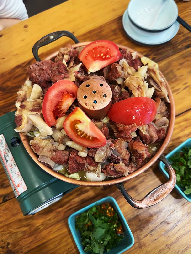 - 牛肉火锅:性价比之王!筋头巴脑的牛肉炖得软烂,胶质丰富,汤底浓郁却不腻,配上一碟自制蘸水,香辣过瘾。份量足到两人吃撑,价格却亲民得让人感动。