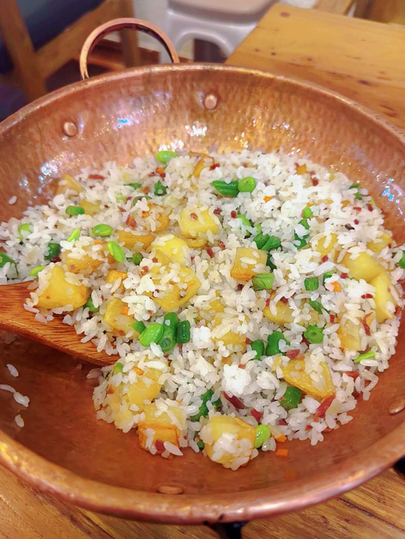 - 小锅饭:看似普通,实则暗藏玄机。土豆外皮烤至焦脆,咬下时“咔嚓”一声,内里却软糯如泥,混合着米饭的香气,每一口都是碳水与油脂的完美碰撞。
