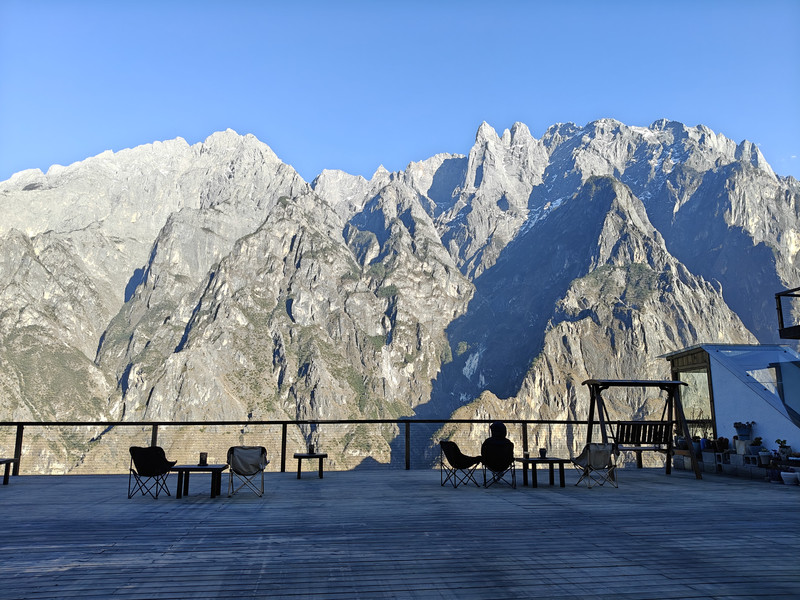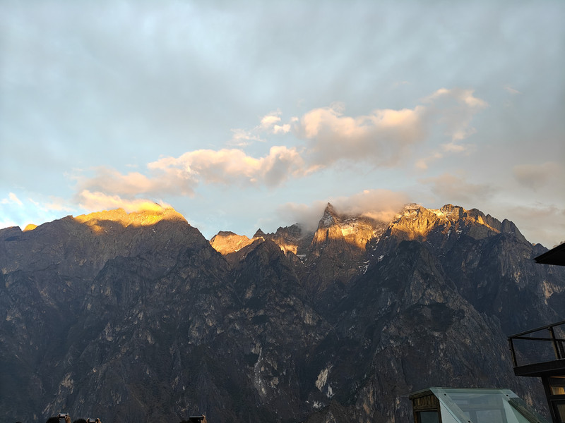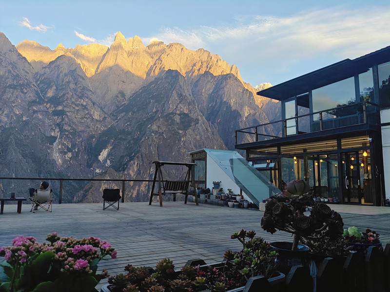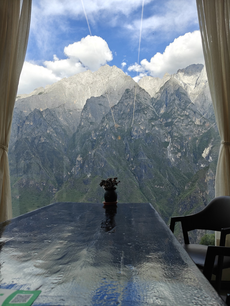 - 订的阳台下房间,2米宽全景窗正对玉龙雪山,白云如贴雪山顶;