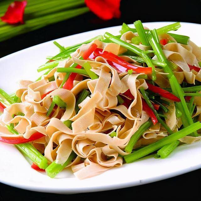 最后关火加入鸡蛋皮丝,拌匀后加入辣椒油(也可不加)