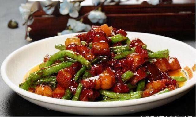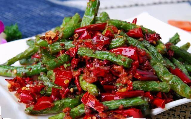 食材:豆角一小把;猪肉馅50克;干辣椒3克;花椒半茶匙;盐;酱油;糖