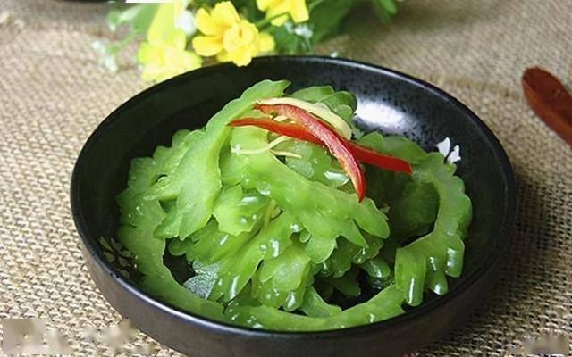 材料:苦瓜1根,姜丝20克,白糖15克,食盐5克
