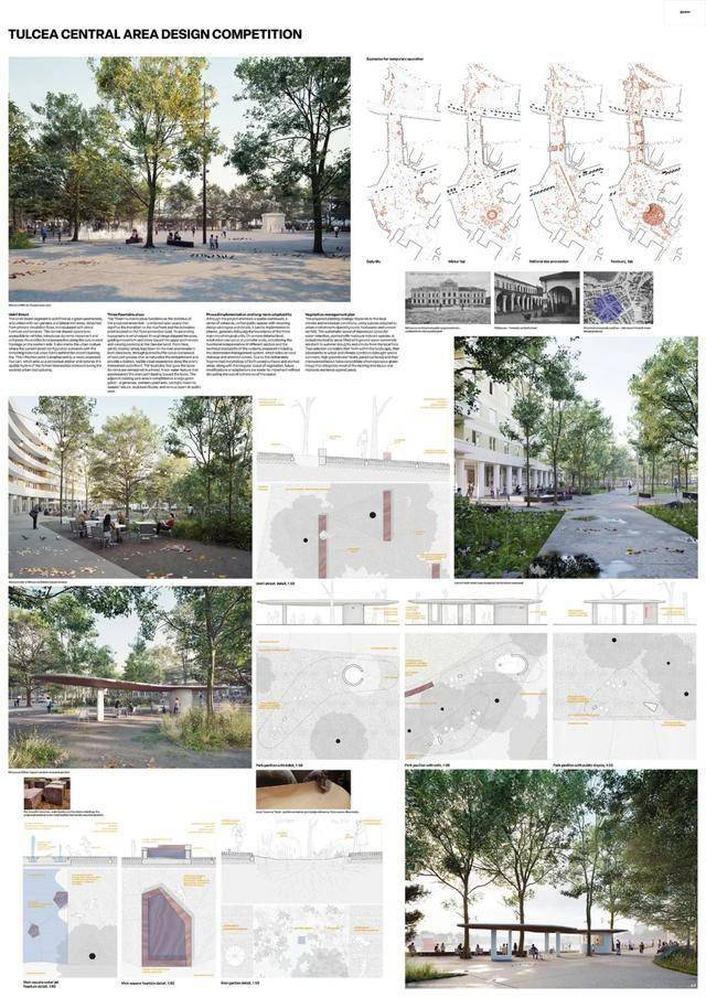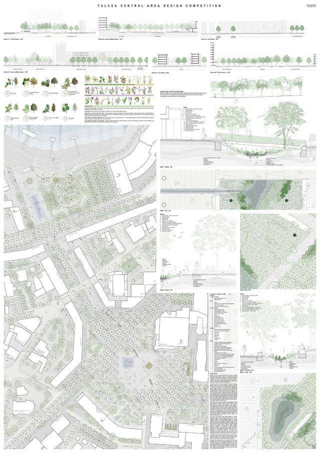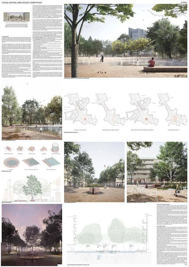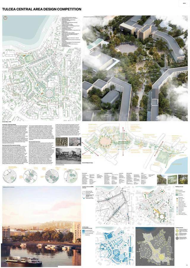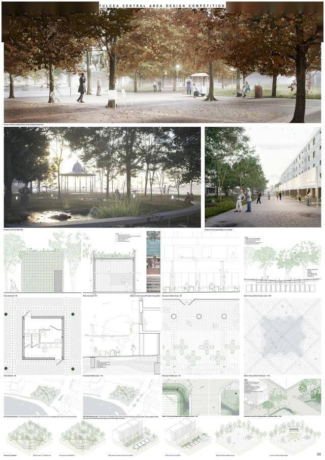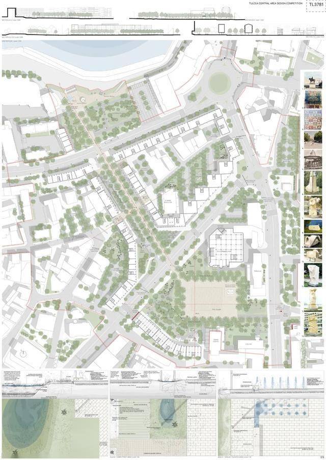 获胜方案提议在市中心打造一个中央公园。其优势在于设计的连续性,从河堤一直延伸至米尔恰广场。广场本身被重新规划,成为一个开放、人性化的空间,兼具体验性和包容性。设计展现了清晰的立场和设计语言,在尊重现有城市肌理的同时,引入了自信的建筑和景观语言。这种方法有望为图尔恰中心区的居民和游客树立鲜明的新形象,并强化其现有印象。