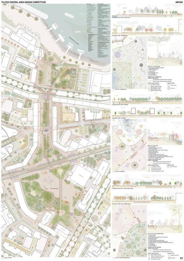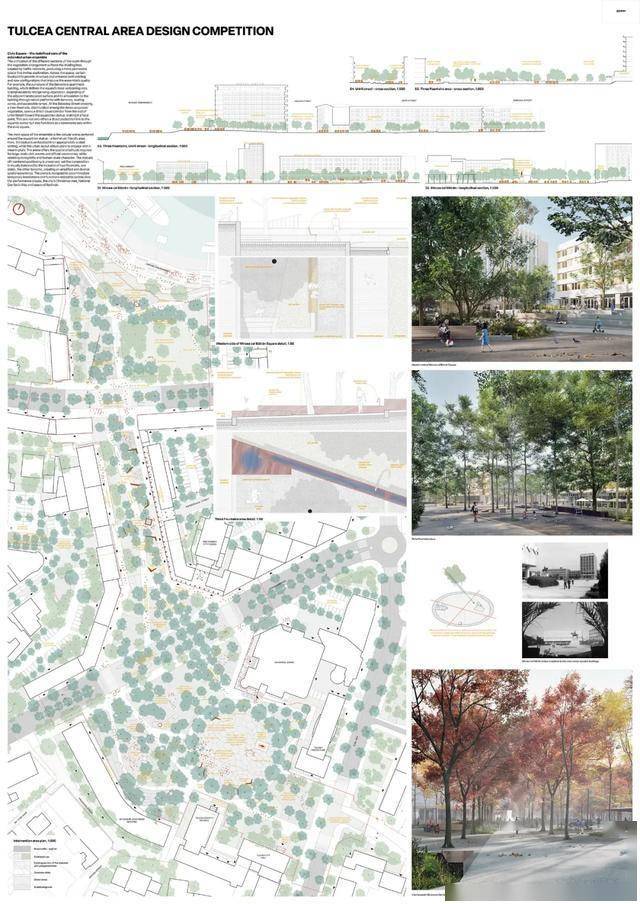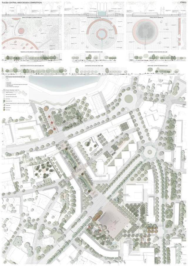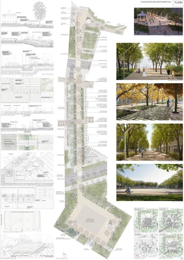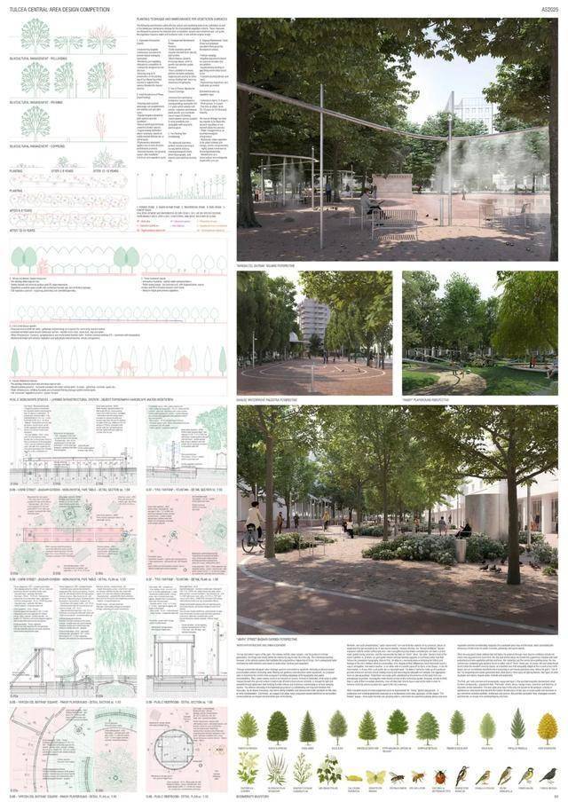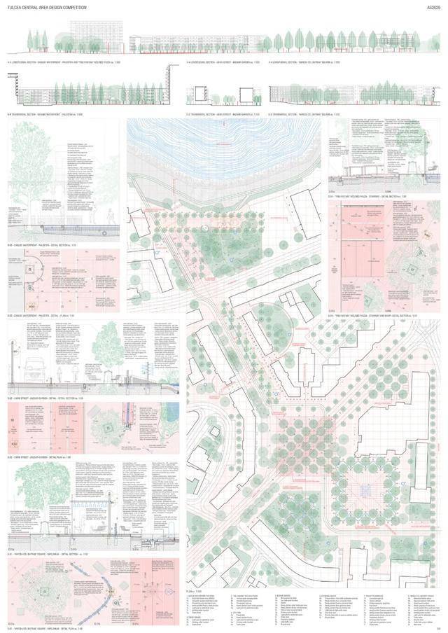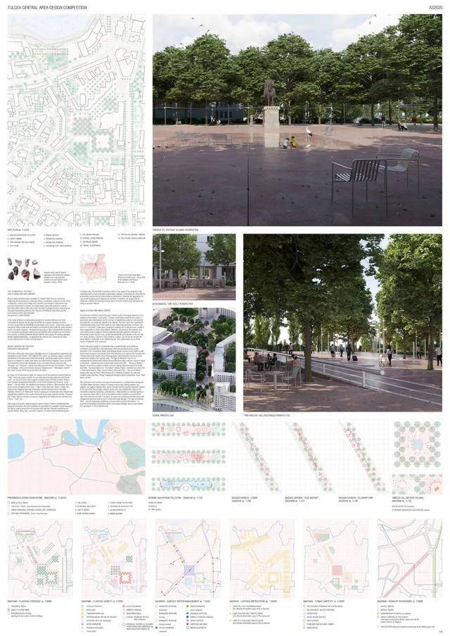 获胜方案提议在市中心打造一个中央公园。其优势在于设计的连续性,从河堤一直延伸至米尔恰广场。广场本身被重新规划,成为一个开放、人性化的空间,兼具体验性和包容性。设计展现了清晰的立场和设计语言,在尊重现有城市肌理的同时,引入了自信的建筑和景观语言。这种方法有望为图尔恰中心区的居民和游客树立鲜明的新形象,并强化其现有印象。