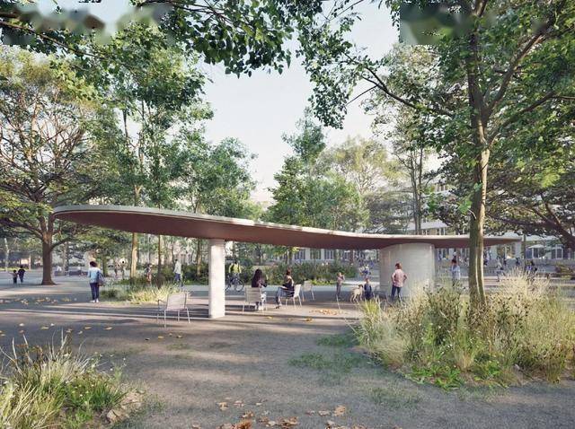 - 中央开放空地的多功能性:硬质铺装场地可快速转换为露天市集、艺术展览、国庆庆典或选举集会的舞台,地面未设置固定构筑物,保障使用灵活性。