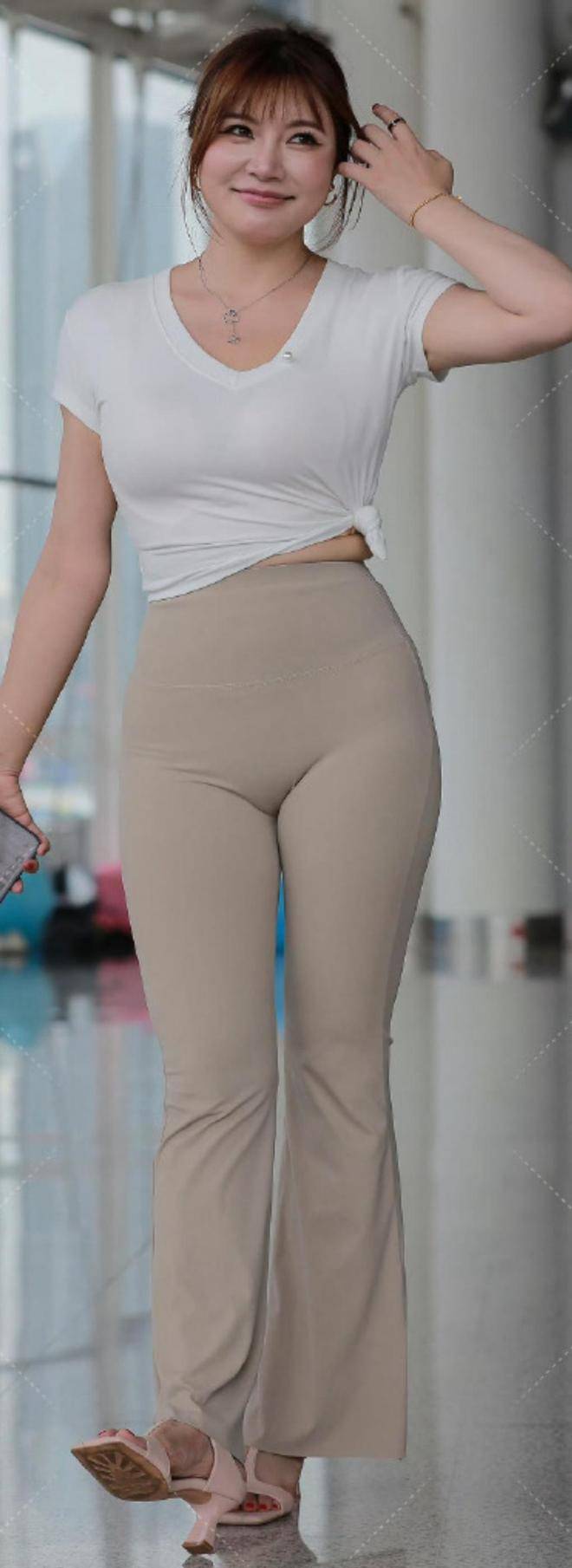 裤线的流畅,贴合着她的曲线,