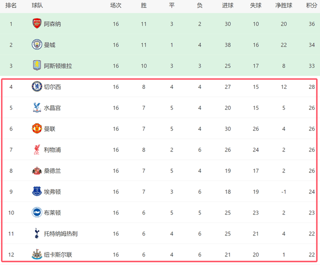目前英超争四格局异常混乱。曼联以26分排名积分榜第6位,落后第四名切尔西仅2分。但从第四名切尔西到第十二名纽卡斯尔,多达9支球队之间仅相差6分,这意味着任何一支球队都有可能在后续赛程中跻身前四。曼联虽然仍有希望,但必须解决防守问题并提升稳定性。正如文中所述:“前提是指自己别再轻易丢分了。”