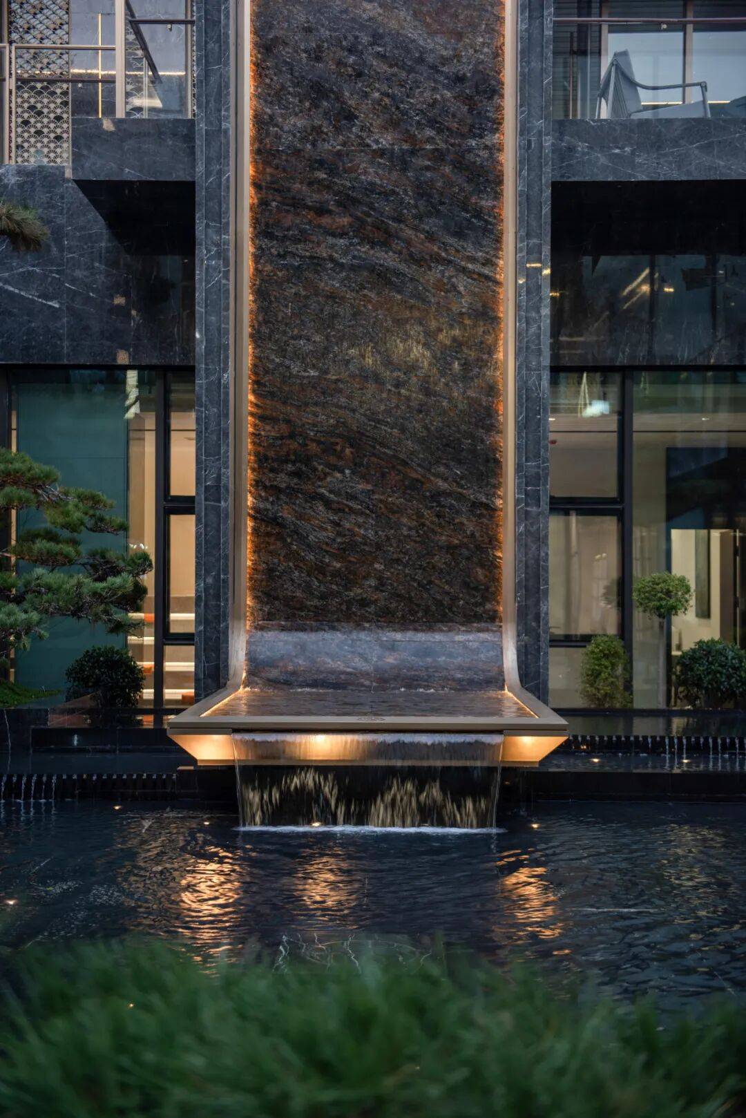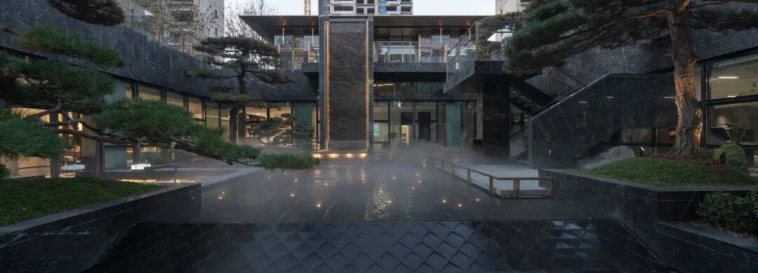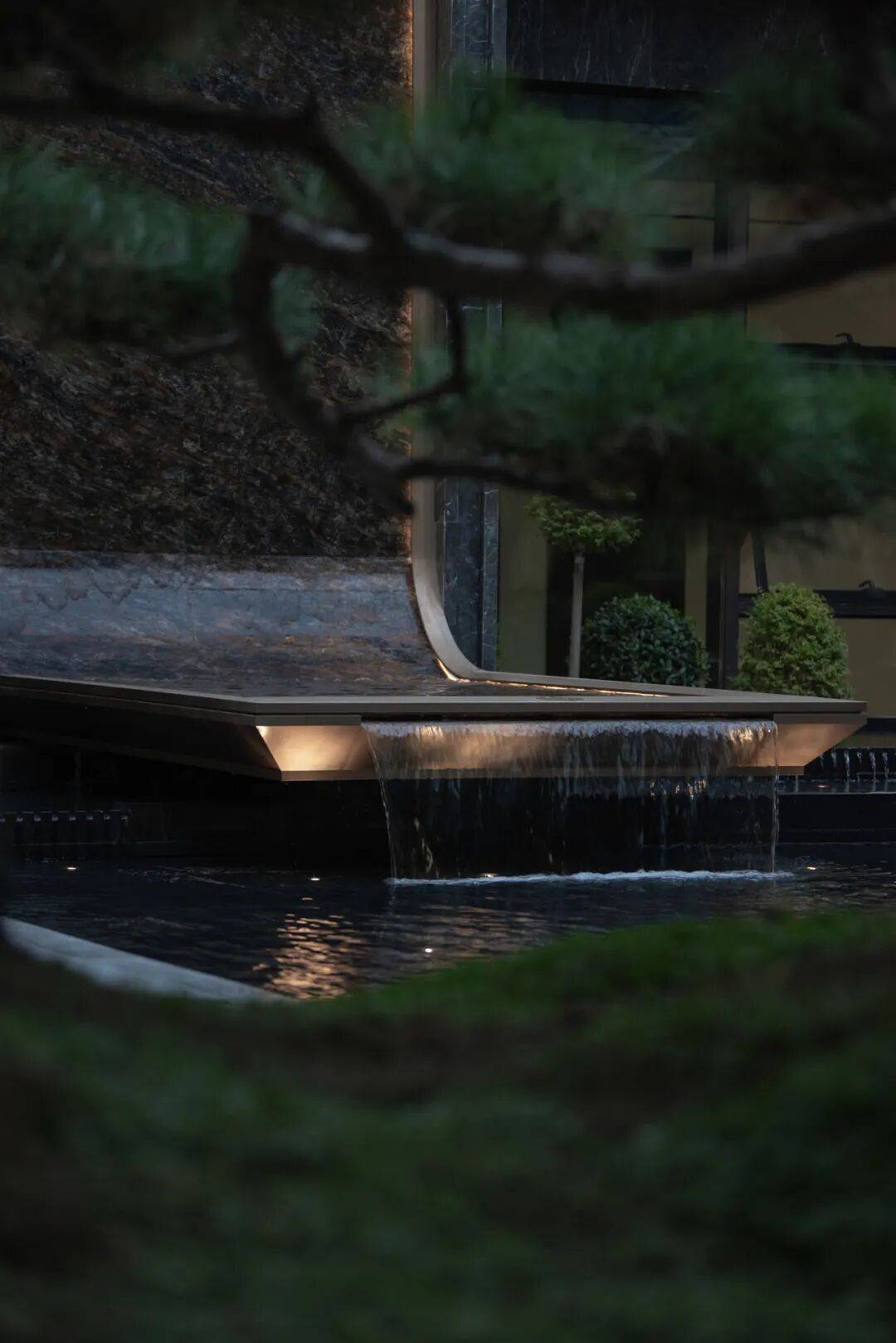 下沉水院是核心景观区。飞瀑与镜池相映,雾森轻绕,灵泉低语。汇聚泰山玉、铂金钻、老皮石等珍稀石材,构筑一处乐活雅聚的隐奢之所。临水卡座静卧飞瀑之侧,无缝衔接下沉会所,环视皆景——山意、水韵、松姿、石趣浑然天成。