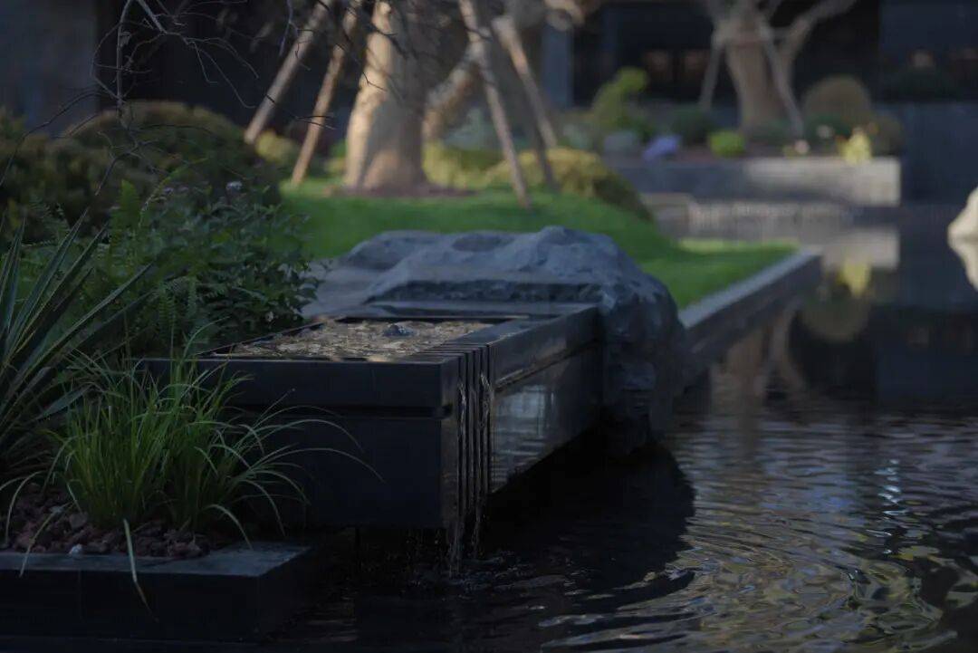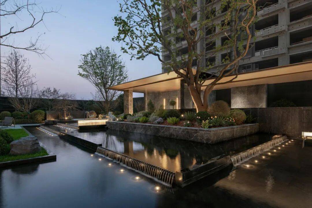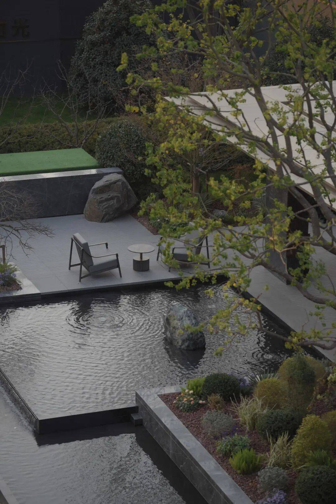 金海瑞园的景观设计堪称“东方造园”的现代典范,将“天人合一”的理念深度融入空间语境,营造出一方身心可栖的平衡之境。项目以“玉泉润居,陶锦雅院”为核心意象,通过精心规划的水景、石景、植物配置,演绎现代东方的静谧与丰盈。