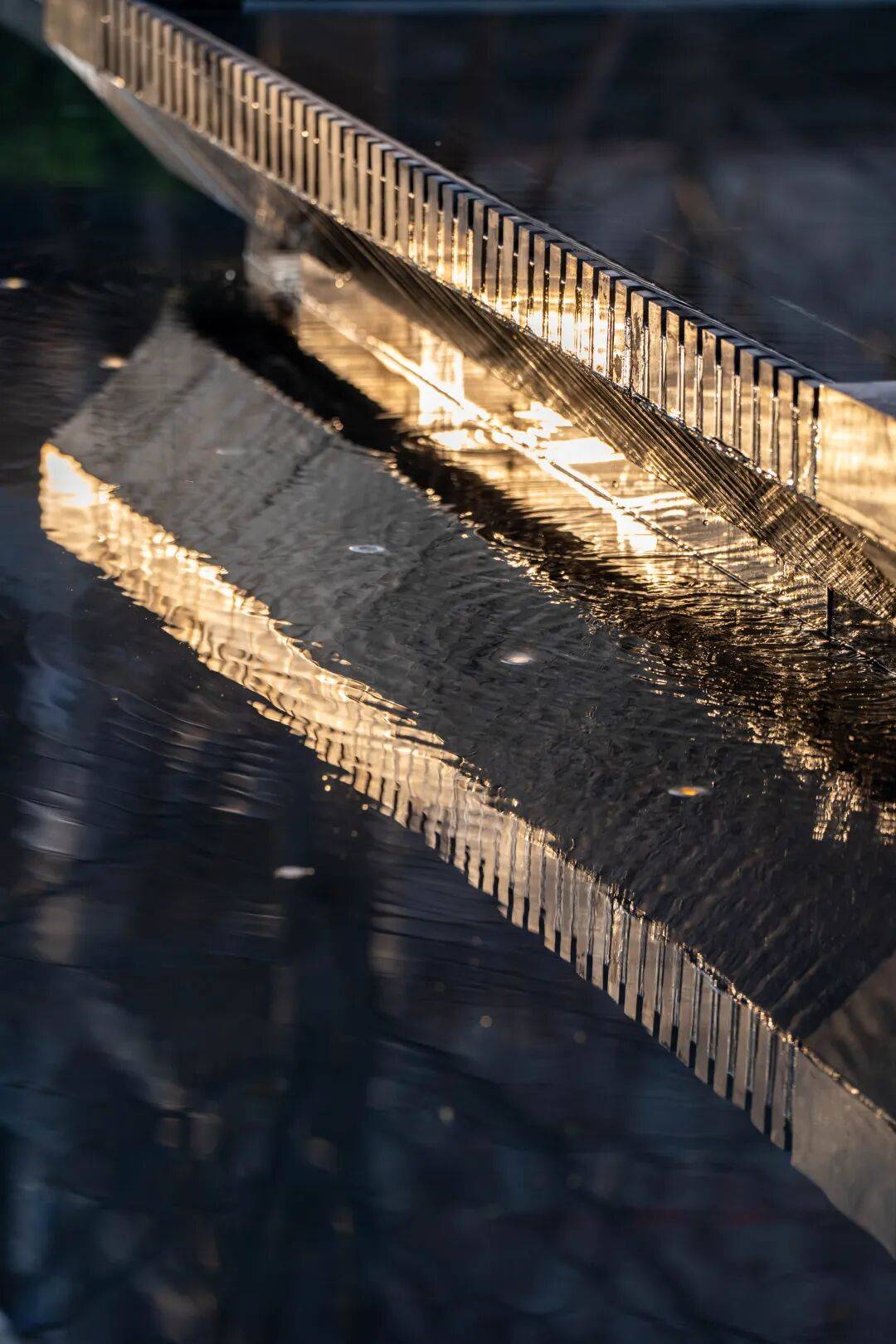 八曲·星垂:“水珠飞溅”。线性叠水如珠帘垂落。