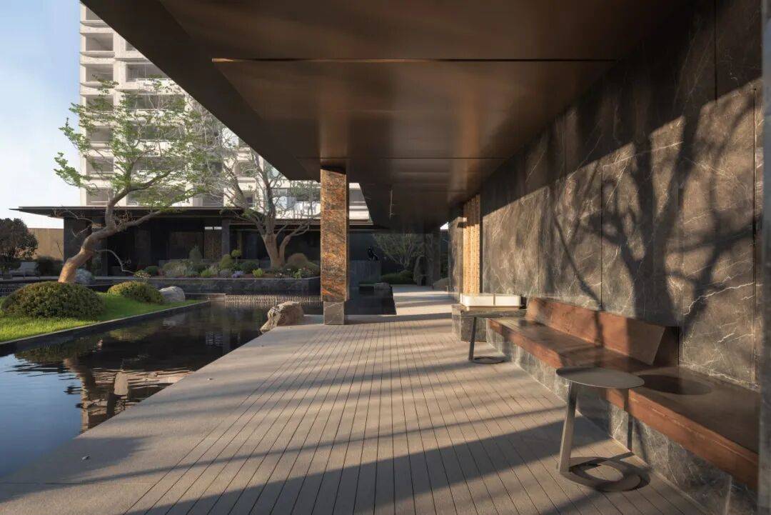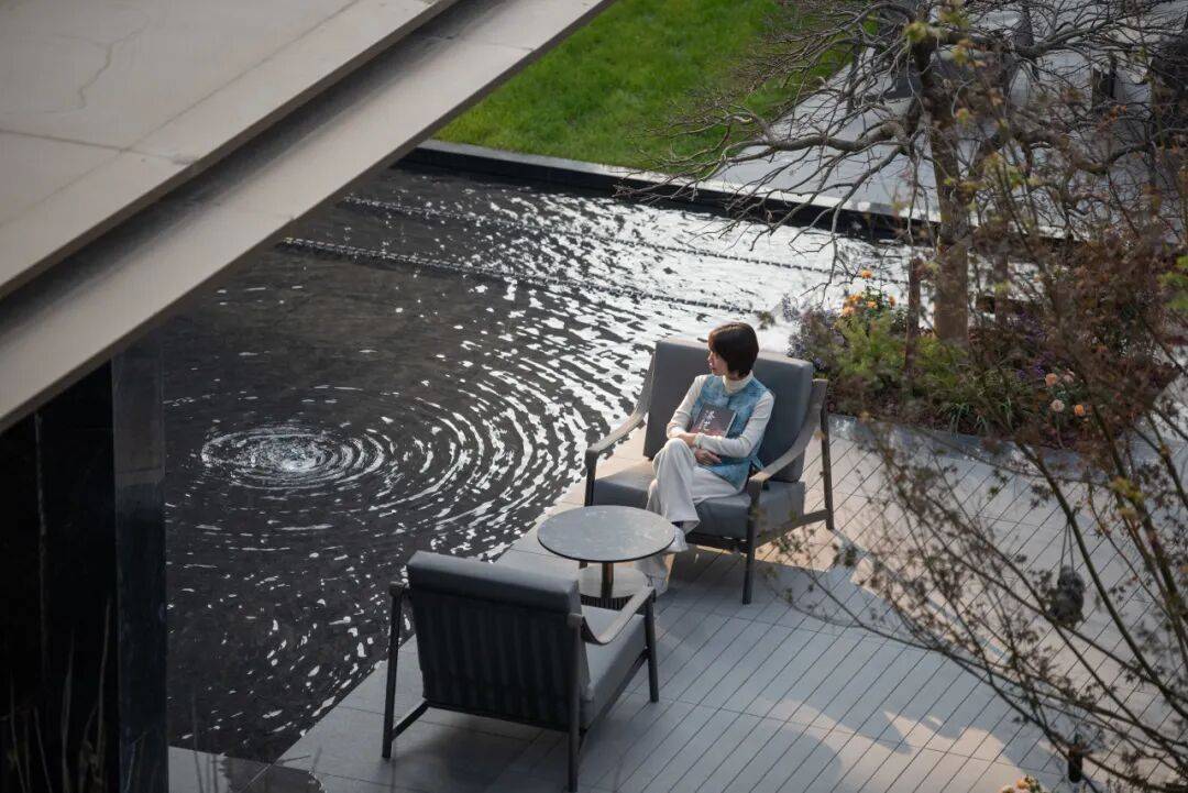 户外客厅,“云水之间,尽得自在”。可独坐静思,亦可与友清谈。此处将室内外空间无缝连接,让居住者在自然与人文的交融中感受生活的惬意。