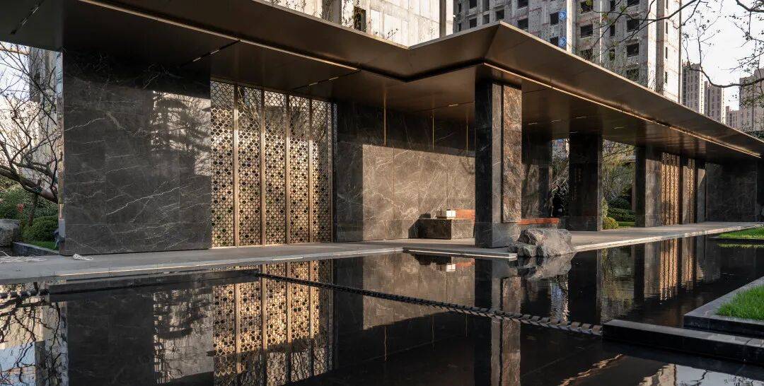 “松石相迎,府门大气雍容”。8米高门庭,50米长序厅,以琉璃点睛,雅奢入境。保留海派门庭的形制与气度,并以东方意蕴“转译”,使传统门庭焕发新的生命力。门庭不仅是物理入口,更是开启归家仪式的第一重心理暗示。