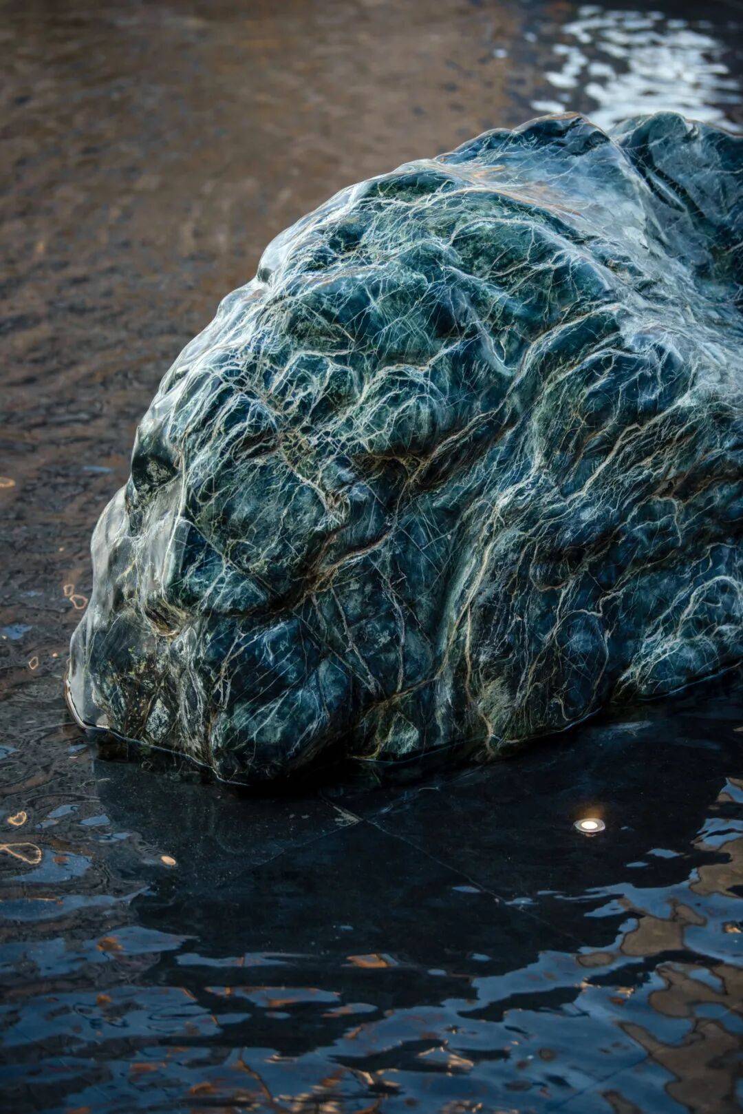 为寻天然石韵,设计团队远赴泰山、山西等地,“跋涉于山川之间”,亲手抚触每一块石料的肌理,“斟酌其形、色、质、韵”。相信“石材自有生命”,匠人之职在于“读懂它,并妥帖安放”。这种对材料的极致尊重与理解,使得每一处石景都独具个性与故事感。
