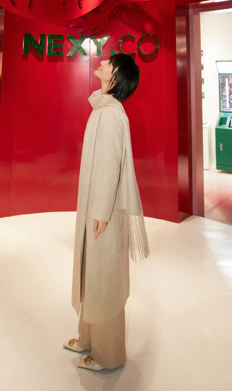 在穿搭方面,张柏芝则巧妙地运用了“同色系+撞色”的搭配技巧,既减龄又充满高级感。内搭一件白色半高领上衣,简洁的版型将她优美的脖颈线条展现得恰到好处,面料自带柔和的光泽感,温柔又显质感。下身搭配了一条同色系的短款伞裙,裙摆微微蓬起,既优化了身材比例,又增添了几分少女感。一双白皙的长腿若隐若现,完美展示了她的高挑身材。