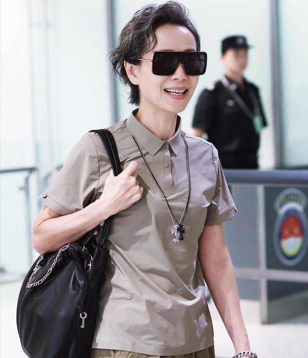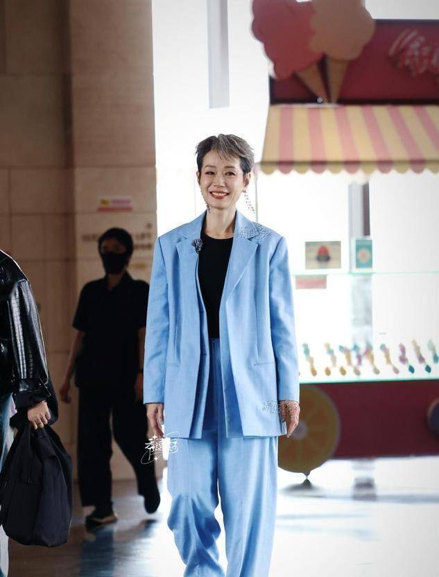 蓝色是她的“本命色”,尤其是穿蓝色西装的时候,那种翩翩君子的英气,简直绝了。 她也不是不敢穿亮的。 那套明黄色外套配蓝色牛仔裤的造型,黄蓝撞色,大胆又和谐,穿出了种经过岁月沉淀后的明媚,不是小姑娘那种甜腻,特别高级。 她的秘诀在于,如果要用鲜艳色,就让它当“点缀色”。 比如一身深蓝色牛仔套装,里面只搭一件红色T恤,小面积的红色瞬间点亮全身,还显得人气色好,但又不会过头。