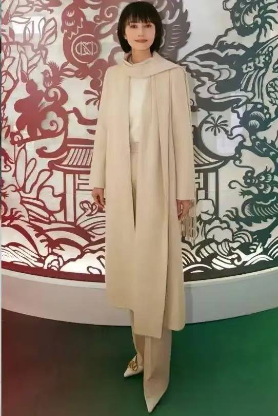 比如正肩设计的T恤、西装,还有各种直筒裤、阔腿裤、烟管裤。 你看她穿那件白色无领西装,里面就配件最基础的灰色圆领T恤,下面一条黑裤子,经典的黑白灰,干净利落。 西装的无领设计比传统的柔和,加上一点拼接细节,就这么一点点变化,整套衣服就不闷了,有种“松弛感通勤风”的味道。 她很少碰那些带钉珠、亮片、大面积印花的衣服,觉得压得慌。 她的道理很简单:身材有短板,越要用简单的线条去扬长避短,复杂的玩意只会把缺点放大。