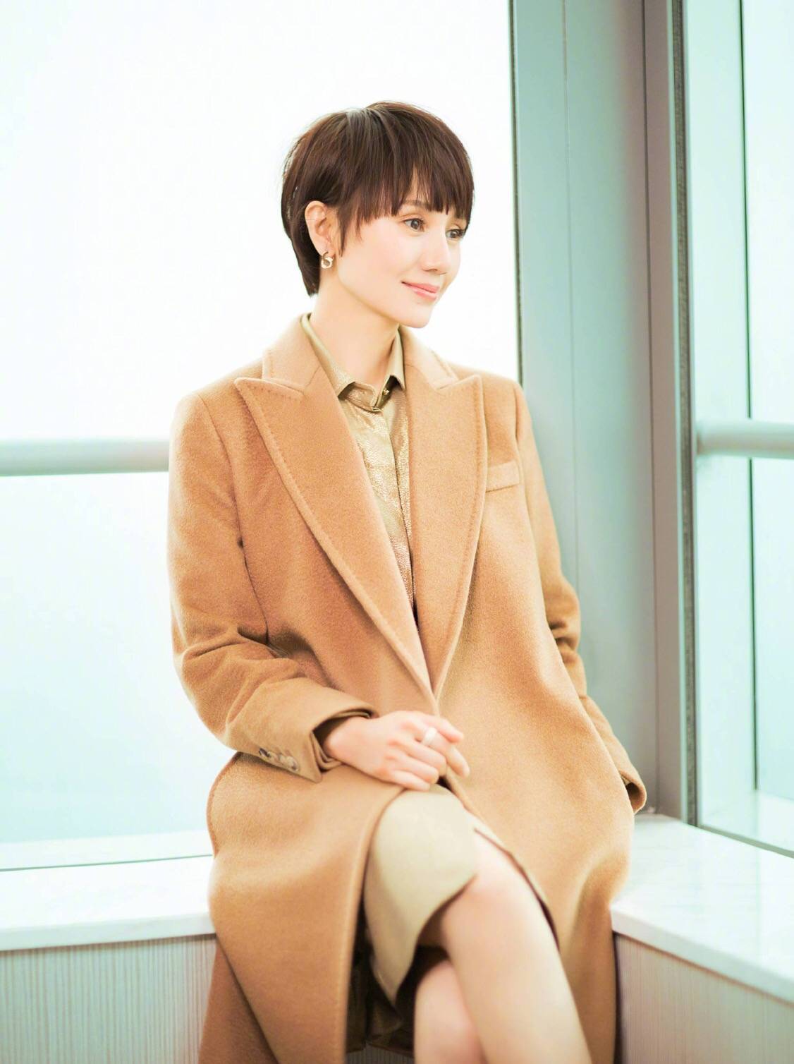 松紧有度:避免全身紧绷或臃肿,如袁泉的修身内搭+廓形外套。