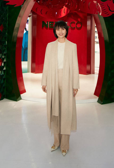 全身黑白灰或燕麦色,通过剪裁(如H型大衣、立领衬衫)提升质感。