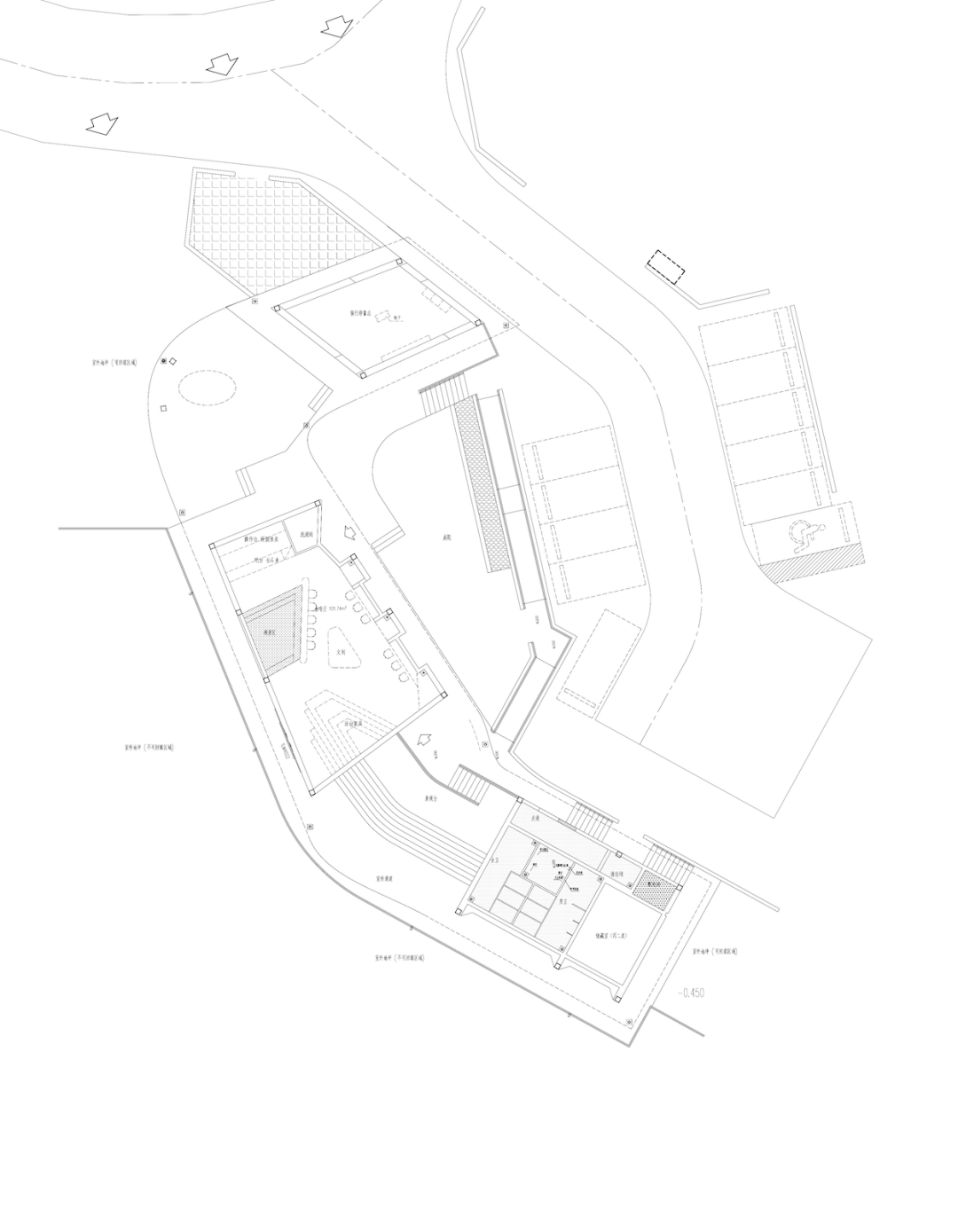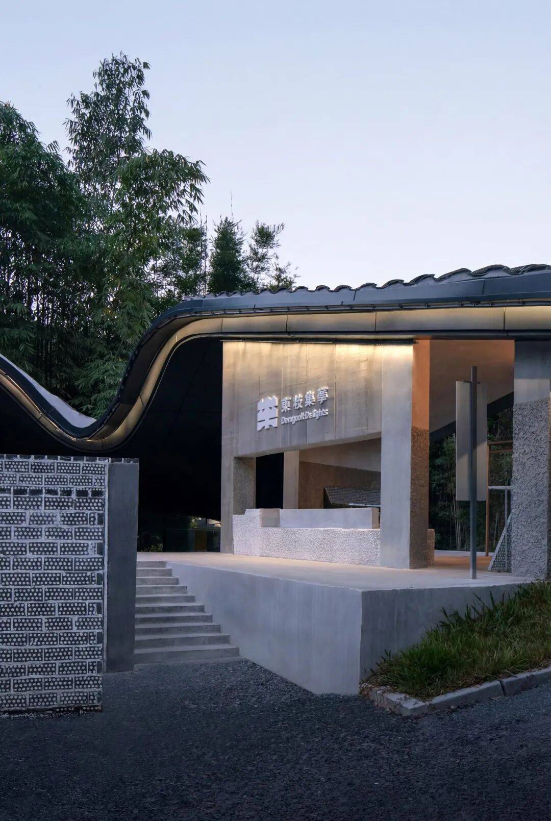 延迟暴露:主入口不直接面向道路,而是通过一段曲折小径引导访客逐步发现建筑全貌,模仿中国传统园林“欲扬先抑”的空间节奏。