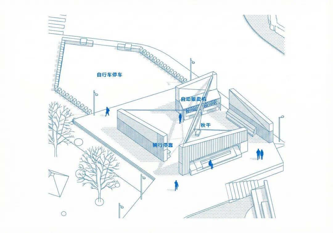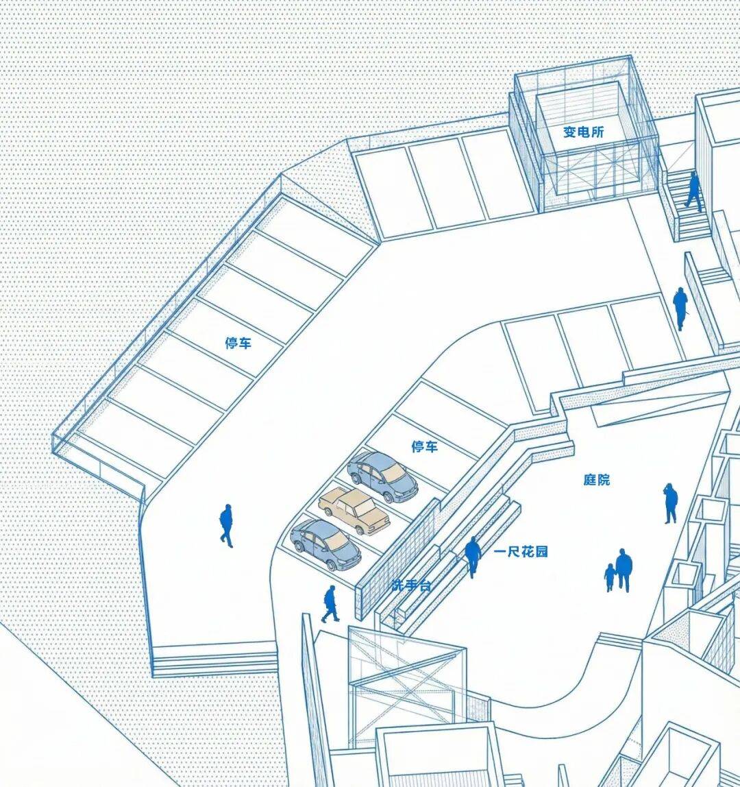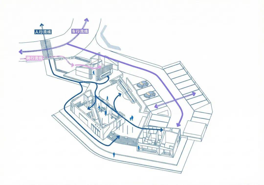 交通整合:利用弯道内外侧高差设置步行阶梯、斜坡廊道或小型电梯塔,实现人车分流;部分路径可嵌入墙体成为“建筑缝隙中的小径”,增强探索趣味。