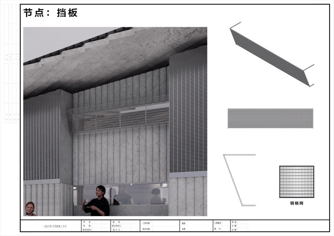 细部设计:栏杆、遮阳百叶等构件亦遵循主弧线方向,形成从整体到细节的一致语法。