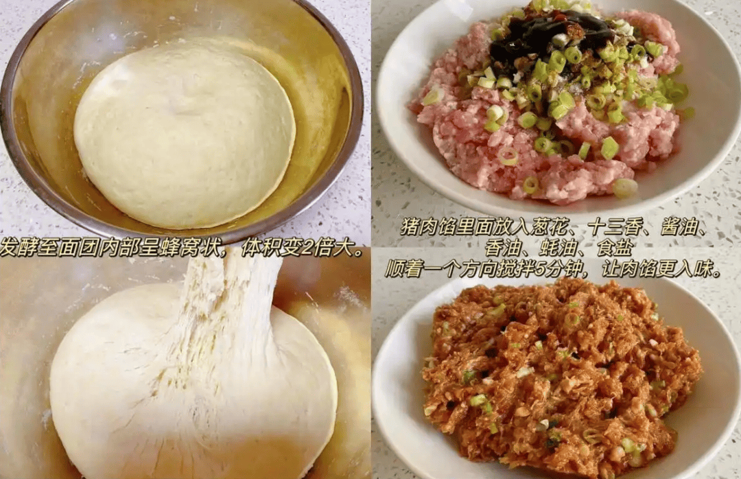 茴香碎临包前拌进肉馅,面团分剂子时开始拌馅。