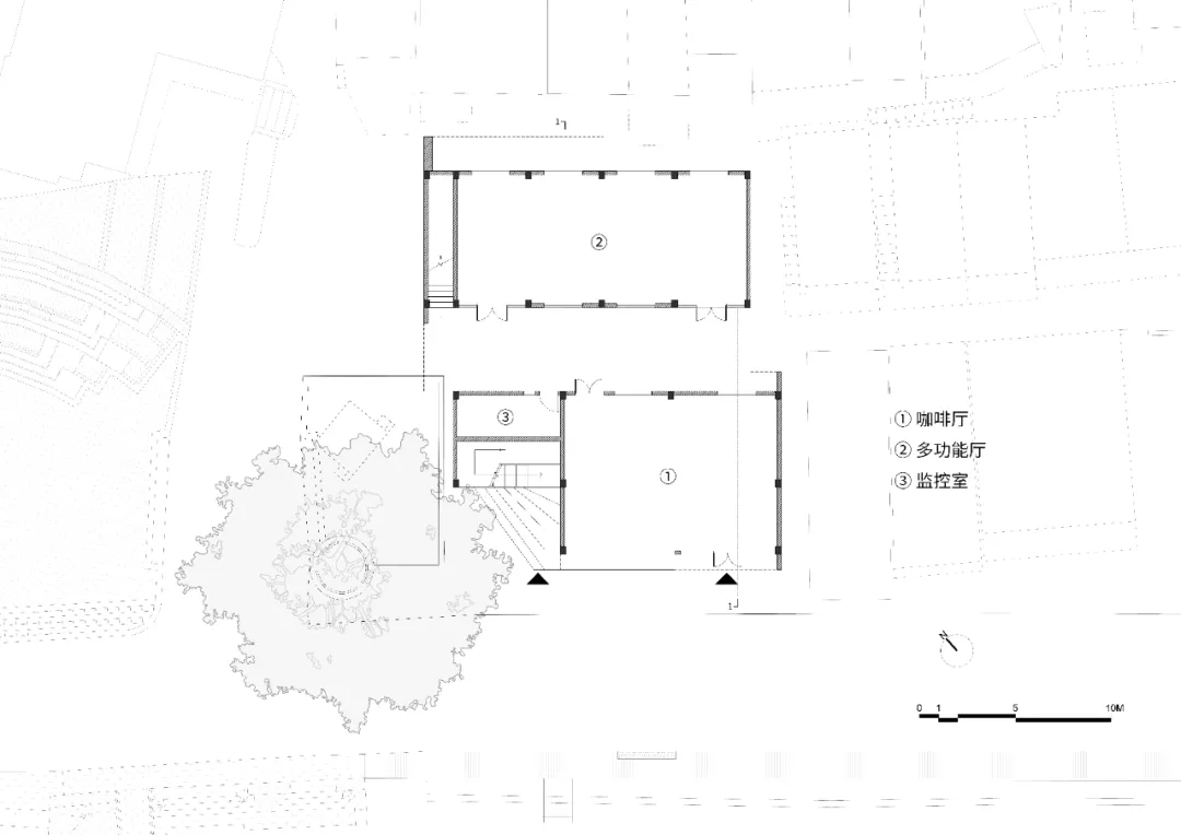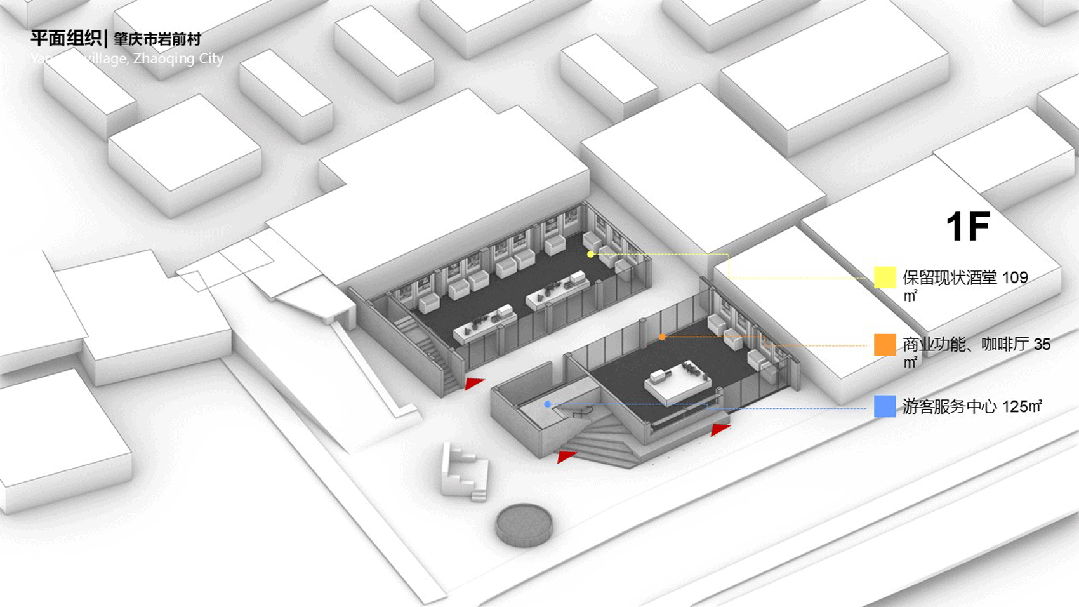 几片置入的山墙,既是对岭南建筑语汇的抽象转译,也编织起建筑的交通流线。通过空间的开放与重构,让村民重新走入公共生活,也让旅者重新认识岩前的真实与温度。
