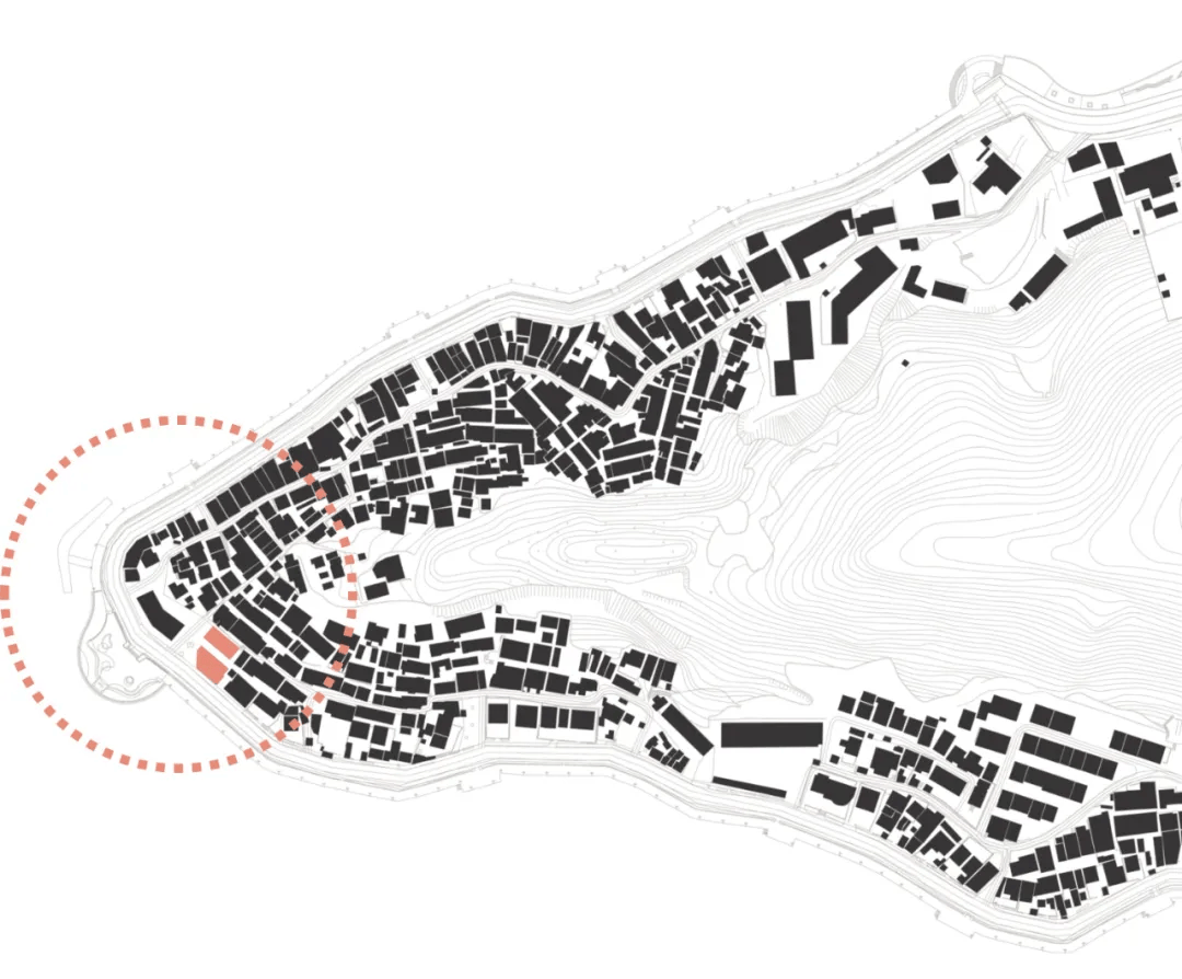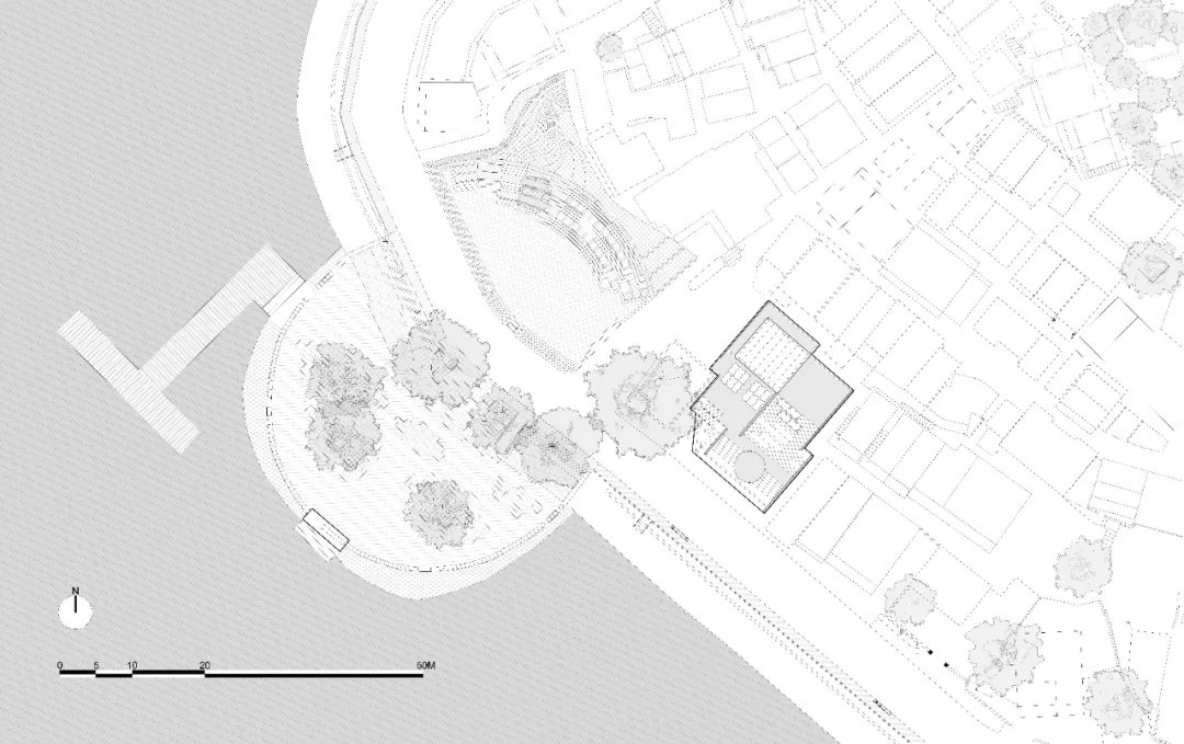 团队选定了位于岩前码头旁的一块场地,其内现存一栋废弃的咖啡厅与一间传统酒堂。设计通过连接两栋旧有建筑,编织出一个全新的公共空间,并为人们观赏星湖提供了全新的视角。