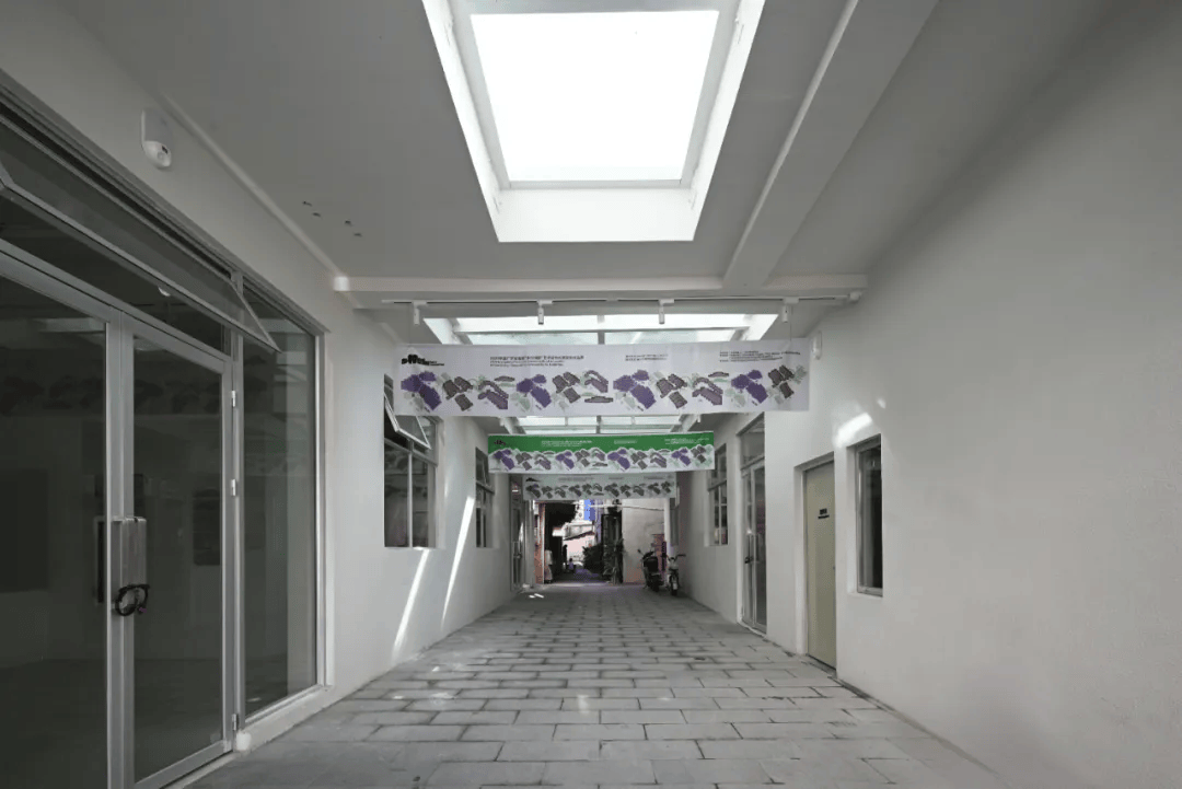 施工过程中,村民反映两栋建筑之间的通道采光不足。为了保留巷道原有的行走体验,团队在二层楼板与大台阶处嵌入天窗,让自然光重新流入村巷。