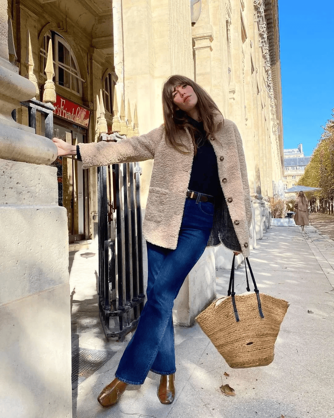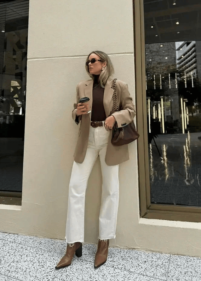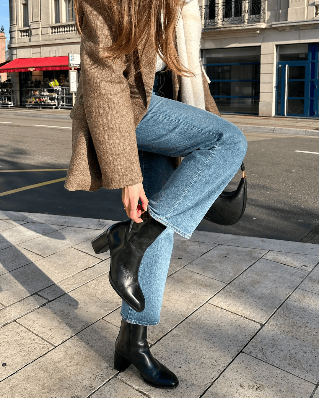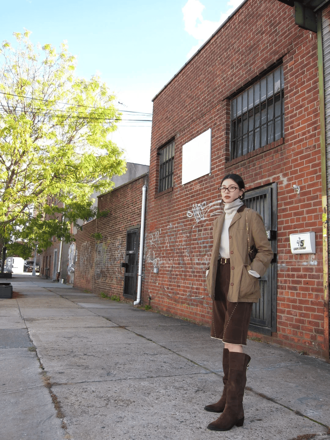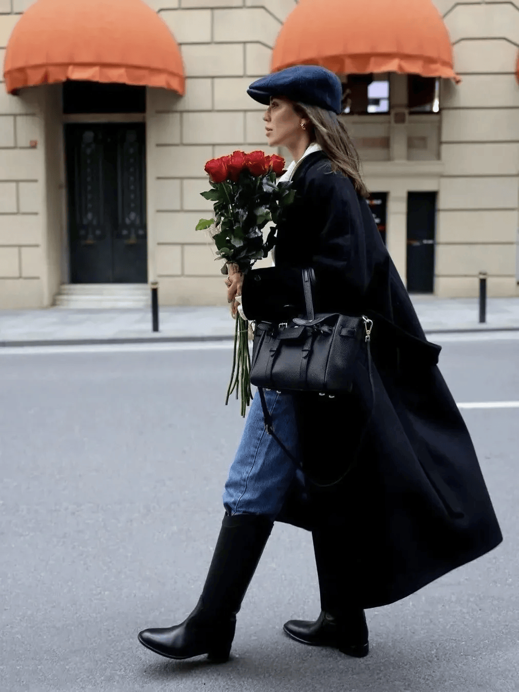 九分裤搭配短靴,露出脚踝最细的部分,能提升“轻盈感”,避免下半身过于厚重,尤其适合小个子。