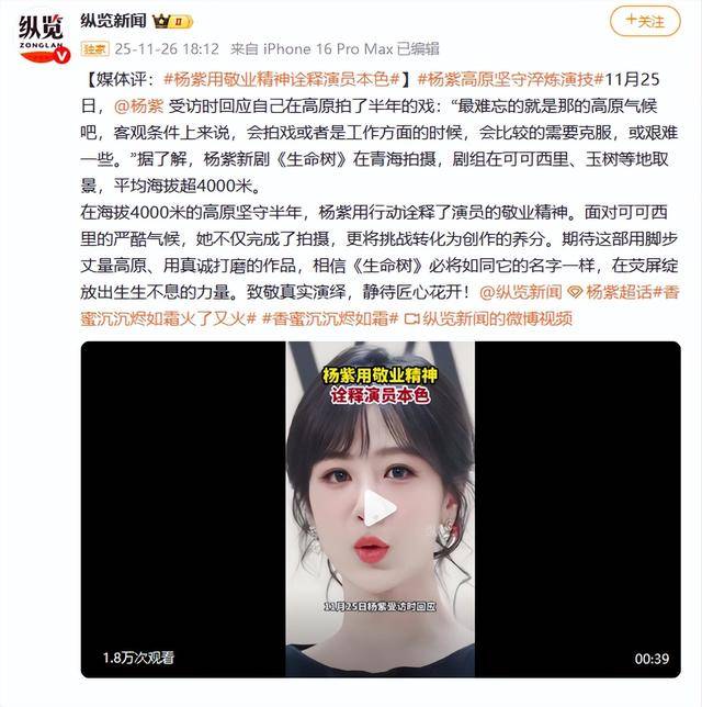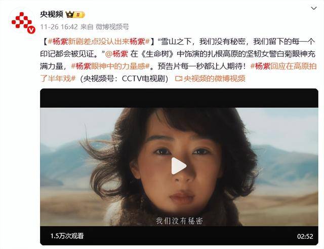 11 月 26 日央视频提杨紫的动态时,不少人都忍不住感叹这官方认证的硬气,这一切也不是空泛的夸赞,是实打实晒出她拍《生命树》的 “苦功夫”。