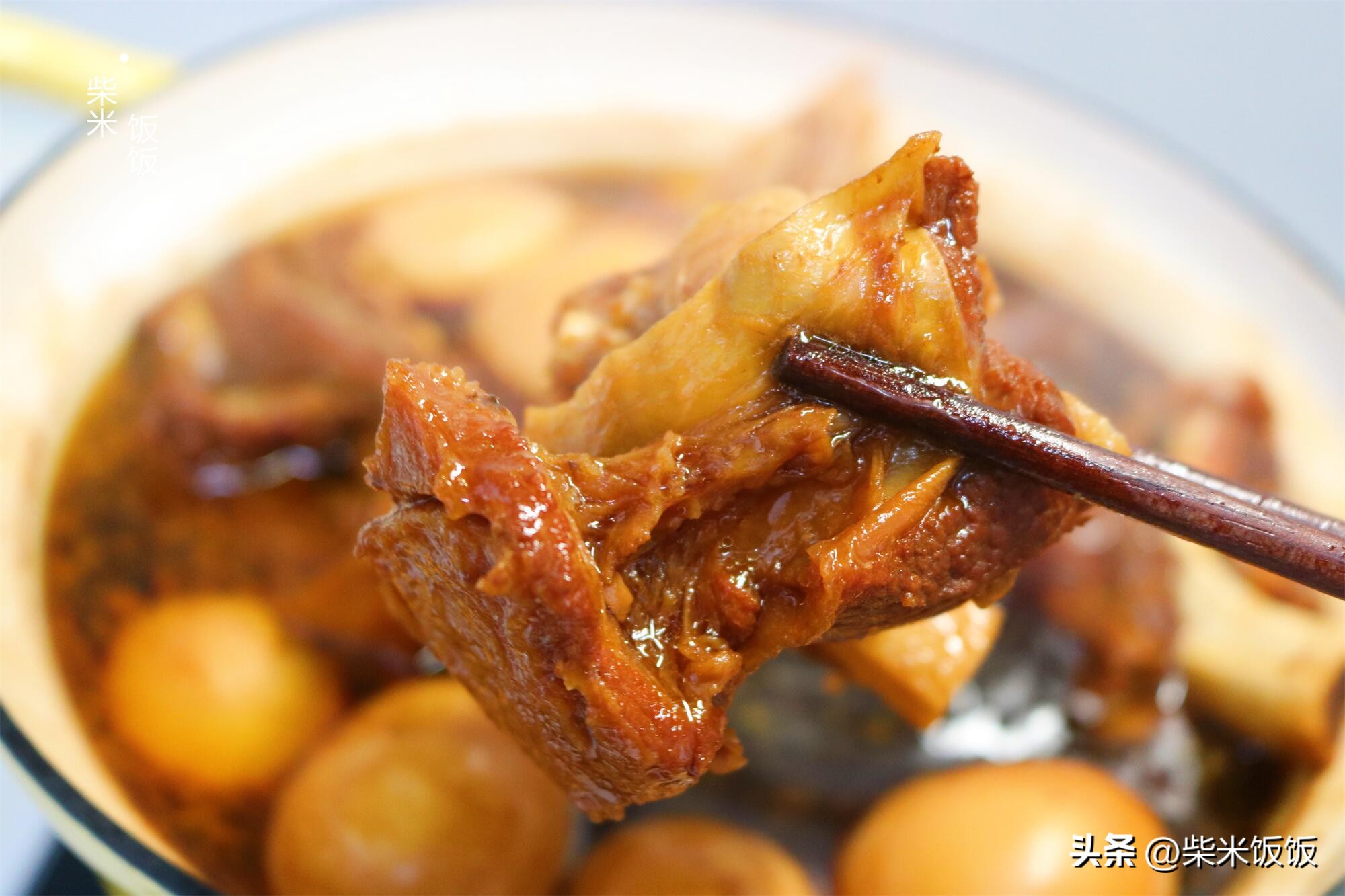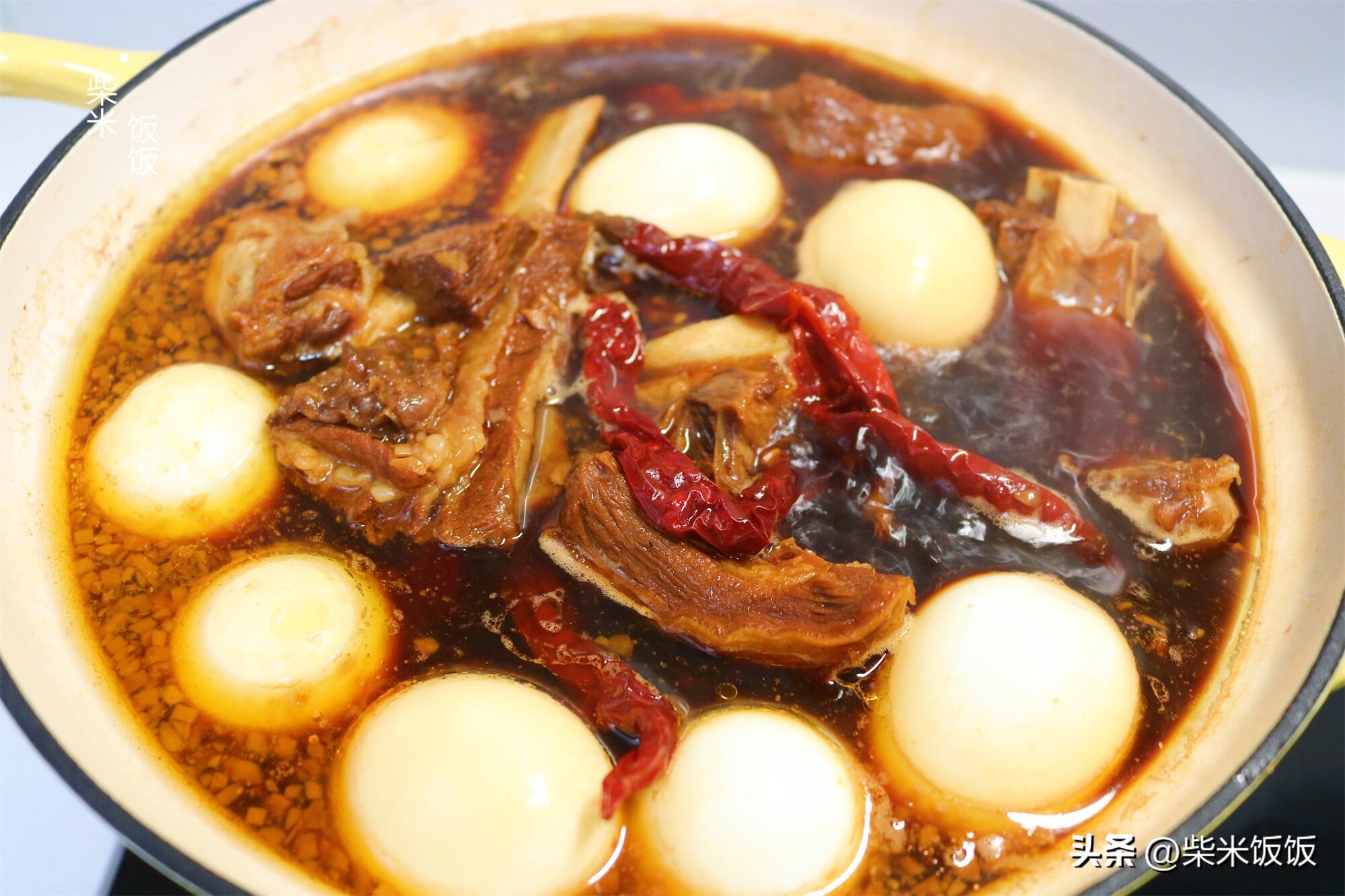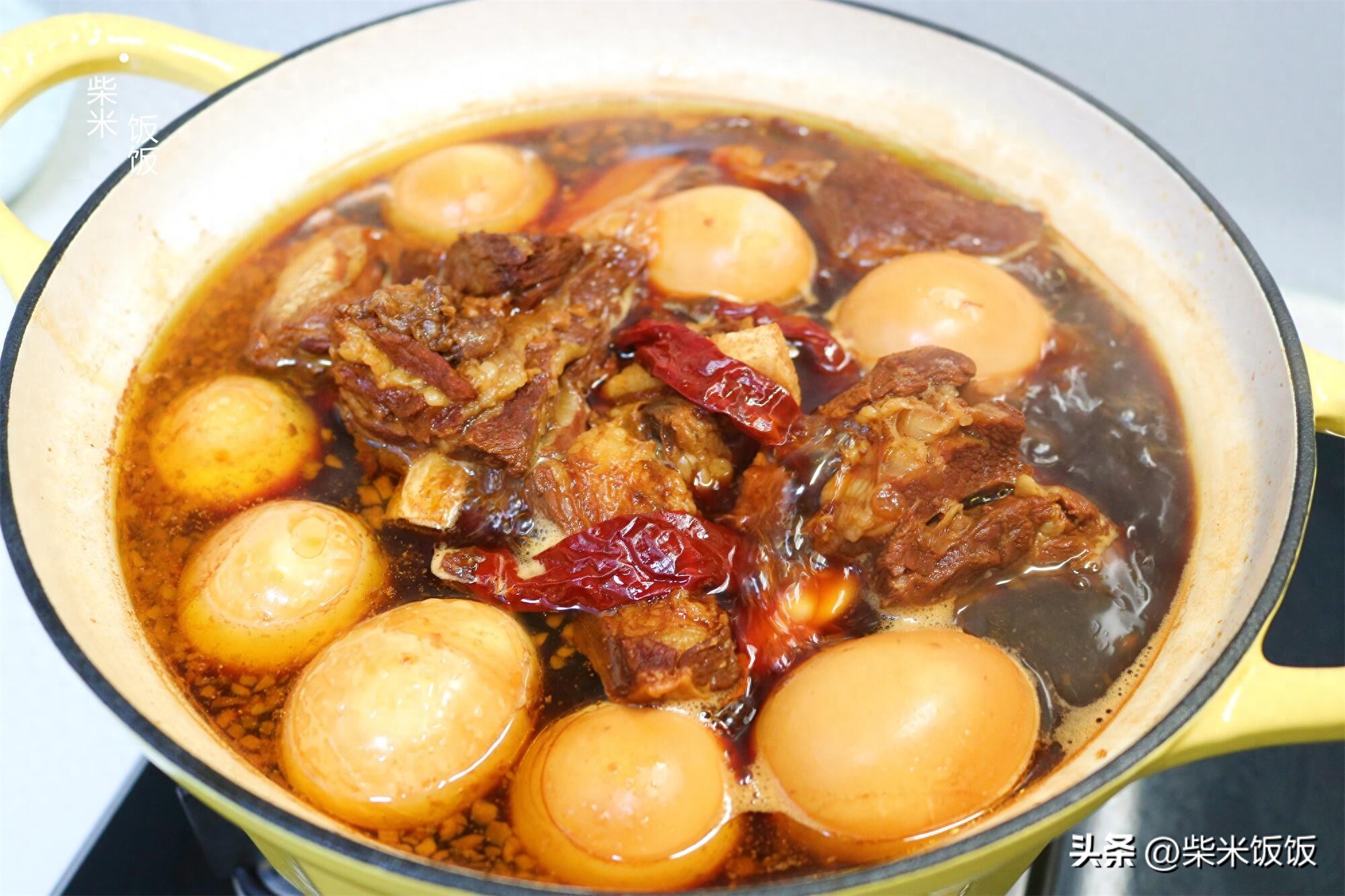 5,30分钟后放入煮熟的鸡蛋,小火再煮一个小时左右。具体时间看牛排骨的状态,煮到牛肉软烂就好。
